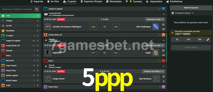 A aposta 5ppp oferece aos jogadores a experiência mais conveniente de apostas em eSports!